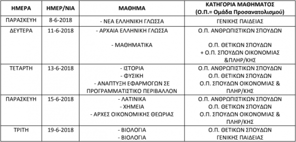 ΠΡΟΓΡΑΜΜΑ ΠΑΝΕΛΛΑΔΙΚΩΝ ΕΞΕΤΑΣΕΩΝ ΕΤΟΥΣ 2018 ΤΩΝ ΗΜΕΡΗΣΙΩΝ ΚΑΙ ΕΣΠΕΡΙΝΩΝ ΓΕΝΙΚΩΝ ΛΥΚΕΙΩΝ