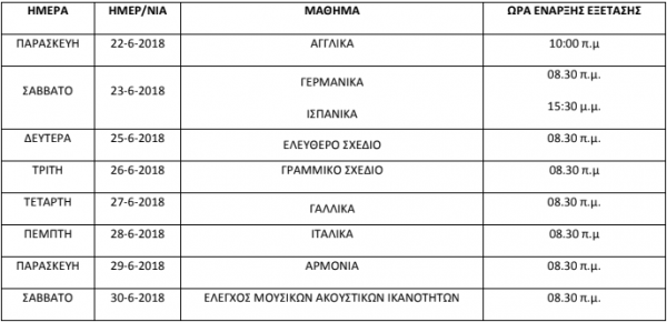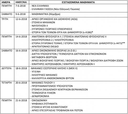ΠΡΟΓΡΑΜΜΑ ΕΞΕΤΑΣΕΩΝ ΕΙΔΙΚΩΝ ΜΑΘΗΜΑΤΩΝ 2018 ΓΙΑ ΓΕΛ & ΕΠΑΛ