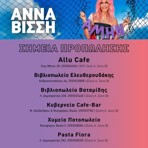 Προπώληση Εισιτηρίων >> ΕΔΩ <<και στα φυσικά σημεία προπωλησης: