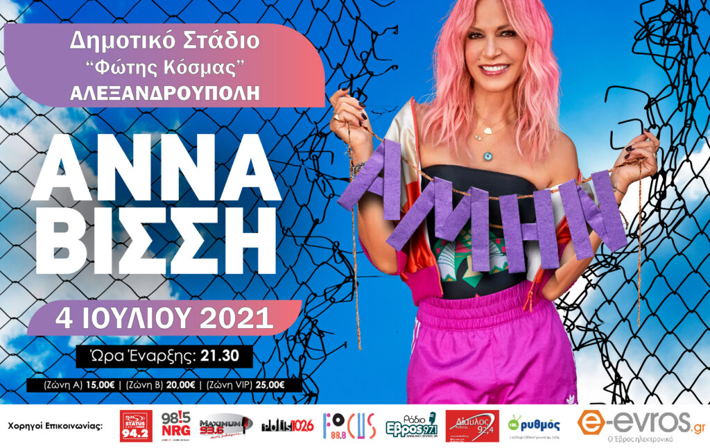 Με μια μεγάλη συναυλία στις 4 Ιουλίου στην Αλεξανδρούπολη ξεκινάει η Άννα Βίσση τις καλοκαιρινές της συναντήσεις με τους θαυμαστές της στα θέατρα της χώρας.