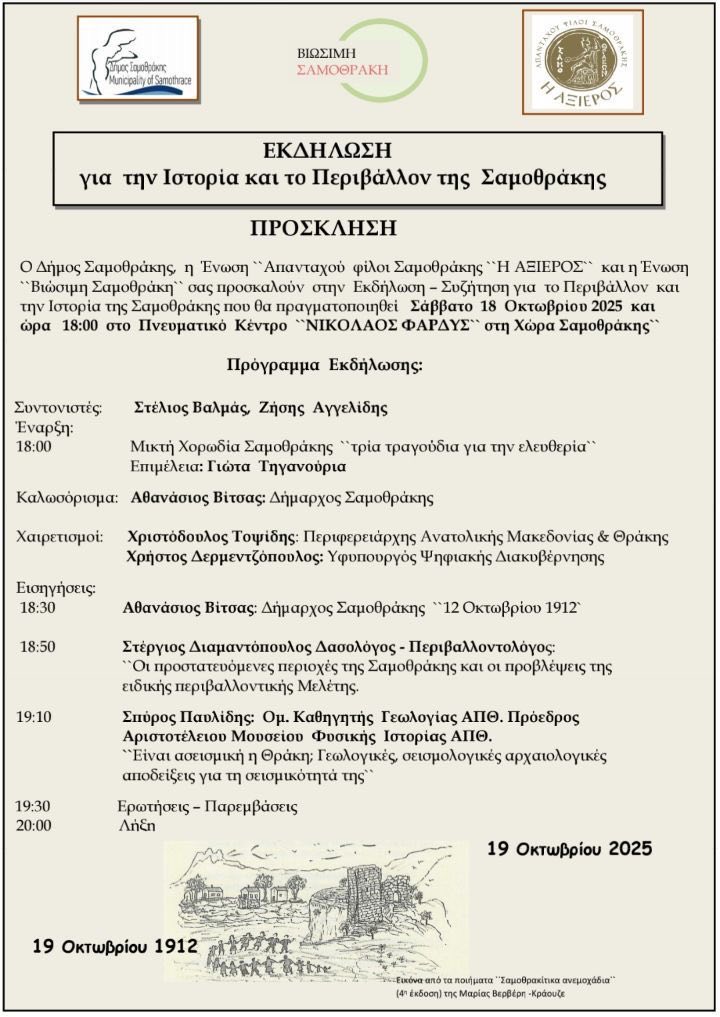 Εκδήλωση για την Ιστορία και το Περιβάλλον της Σαμοθράκης