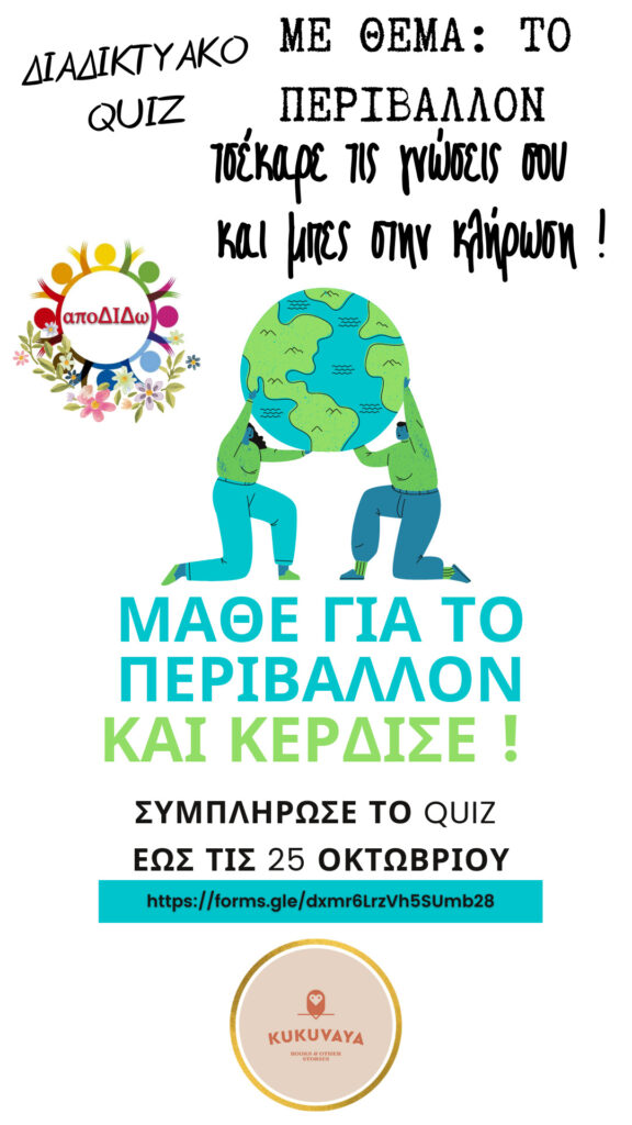 Η εθελοντική ομάδα ‘’αποΔΙΔω’’ ευαισθητοποιημένη σε θέματα που αφορούν στο περιβάλλον διοργανώνει ένα διαδικτυακό QUIZ για μικρούς και μεγάλους.