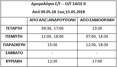 Μέχρι και εχθές τα δρομολόγια Σαμοθράκη – Αλεξανδρούπολη δεν πραγματοποιούνταν ενώ σήμερα όλα δείχνουν ότι όλα έχουν επιστρέψει σε κανονικούς ρυθμούς και τα δρομολόγια από Τετάρτη 9 Μαΐου και για την υπόλοιπη εβδομάδα διαμορφώνονται ως εξής: