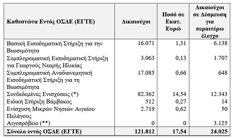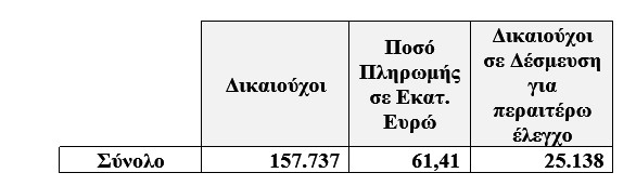 Στα ποσά αυτά, δεν περιλαμβάνονται οι αιτήσεις των υποψηφίων δικαιούχων που ελέγχονται από τη Διεύθυνση Αντιμετώπισης Οργανωμένου Εγκλήματος.
