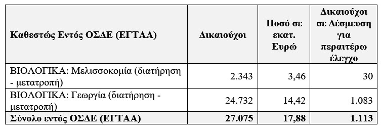 3. Πληρωμές Βιολογικής Γεωργίας και Μελισσοκομίας Εντός ΟΣΔΕ: