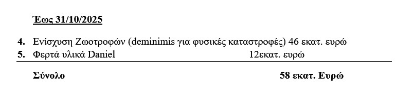 (**)Σημειώνεται ότι ειδικά για την ενίσχυση Αιγοπρόβειου, αριθμός 34.617 αιτήσεων ποσού 10 εκατ. ευρώ περίπου, εκτιμάται ότι θα πληρωθούν εντός Νοεμβρίου 2025, καθώς απαιτείται περαιτέρω διασταύρωση της παραγωγής γάλακτος σε σχέση με τα στοιχεία του myDATA.