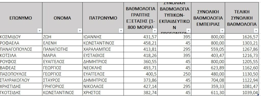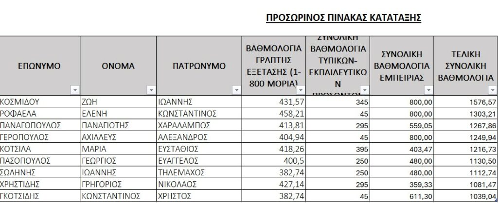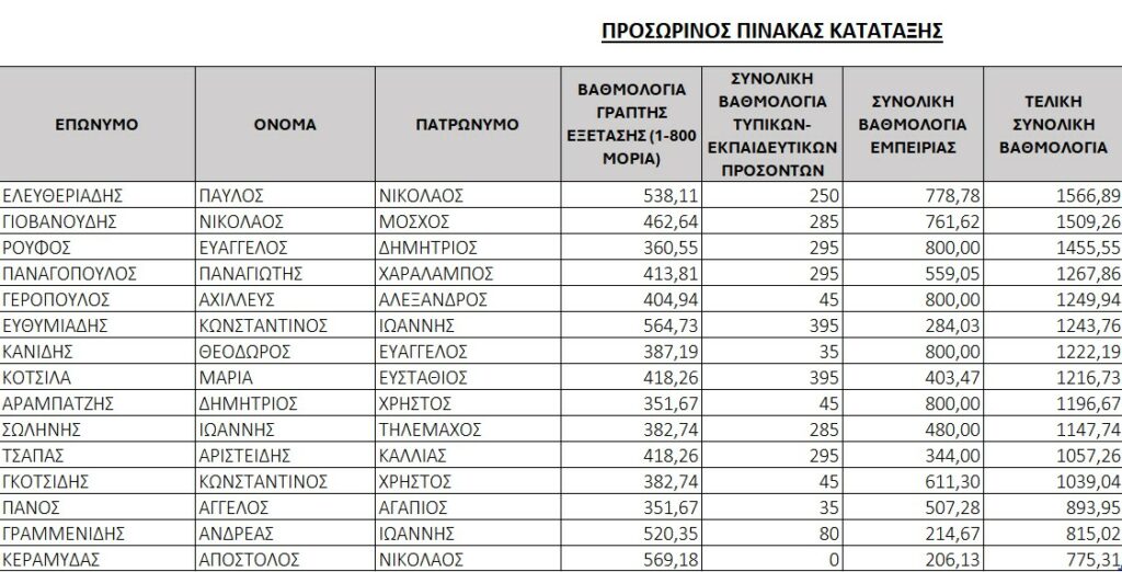 Πιο συγκεκριμένα, η αρμόδια Επιτροπή Επιλογής Στελεχών κατήρτισε τους προσωρινούς πίνακες: