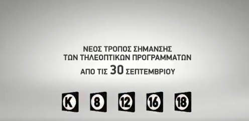 Αλλάζουν τα σήματα καταλληλότητας των τηλεοπτικών προγραμμάτων από 30 Σεπτεμβρίου 2019.