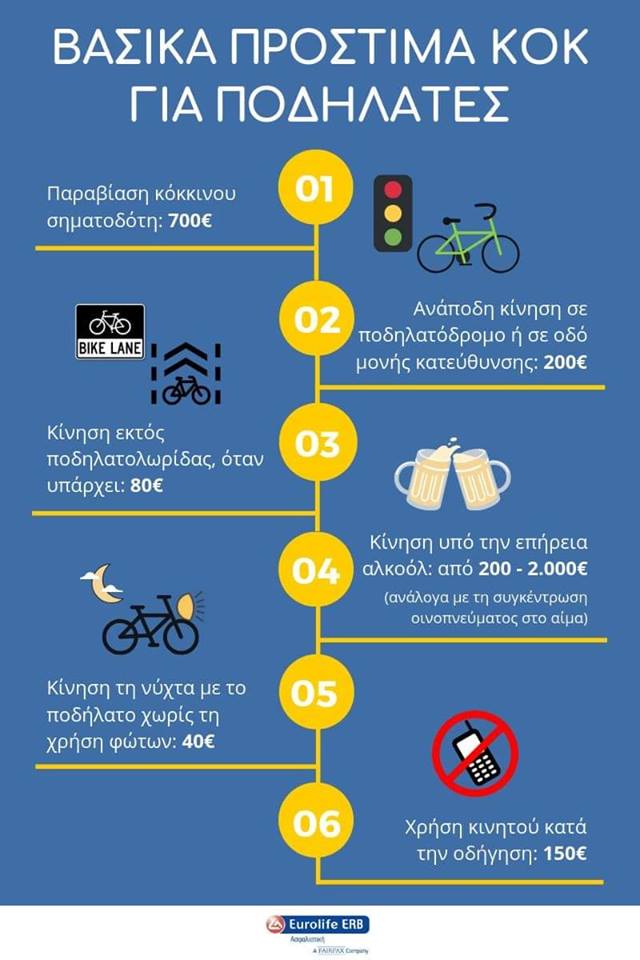 Αυτά είναι τα πρόστιμα που ορίζει ο Κ.Ο.Κ για τους ποδηλάτες ( φωτογραφία)