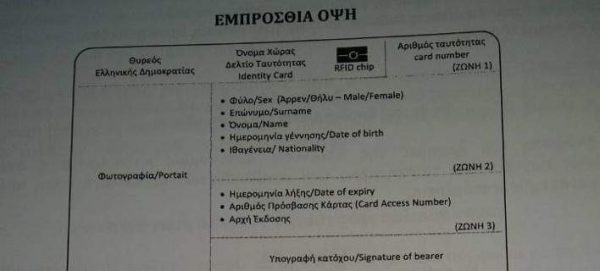 - Ζώνη 2: Φύλο/Sex (Άρρεν/Θήλυ-Male/Female), Επώνυμο, Όνομα, Ημερομηνία Γέννησης, Ιθαγένεια