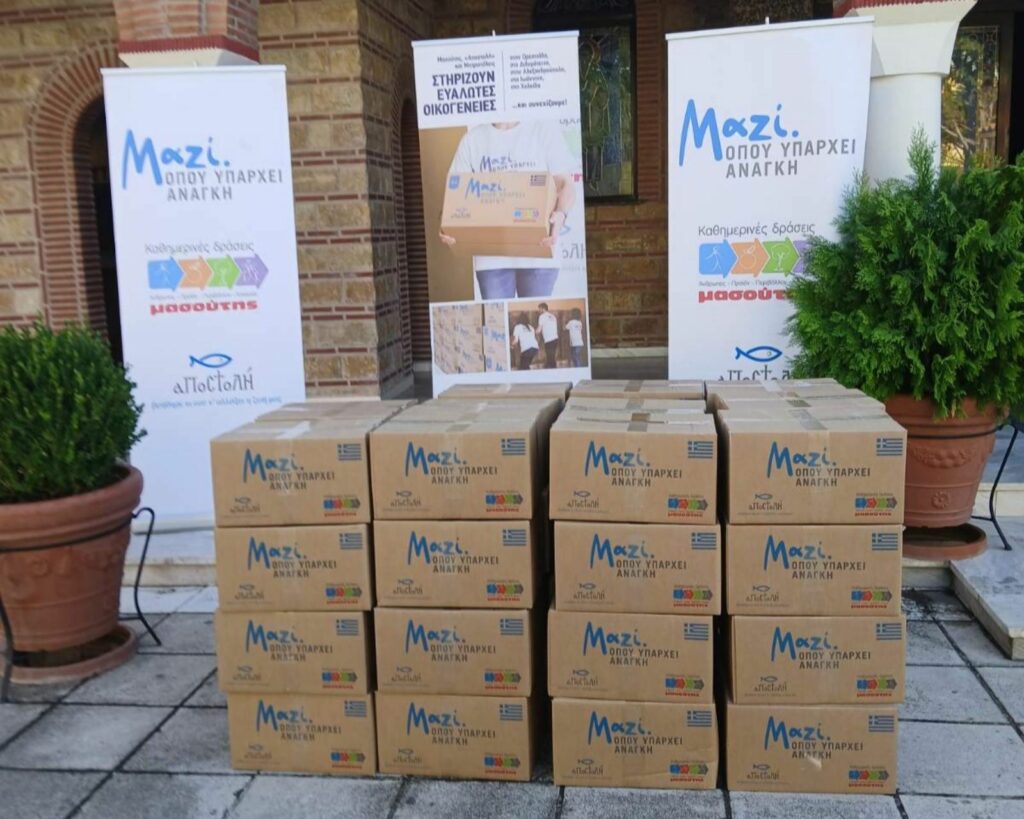 Στις 12 του αυτού μηνός διενεμήθηκαν άλλα 150 δέματα σε ισάριθμες άπορες οικογένειες, που προσφέρει ο Φιλανθρωπικός Οργανισμός της Ιεράς Αρχιεπισκοπής Αθηνών «ΑΠΟΣΤΟΛΗ» σε συνεργασία με την υπεραγορά «ΜΑΣΟΥΤΗΣ».