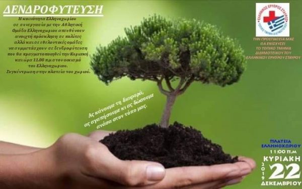 Η κοινότητα Ελληνοχωρίου σε συνεργασία με την αθλητική ομάδα Ελληνοχωρίου απευθύνουν ανοιχτή πρόσκληση σε πολίτες αλλά και σε εθελοντικές ομάδες να συμμετάσχουν στην δενδροφύτευση που θα πραγματοποιηθεί την Κυριακή 22 Δεκεμβρίου και ώρα 11.00 π.μ στον οικισμό του Ελληνοχωρίου (Συγκέντρωση στην πλατεία του χωριού).