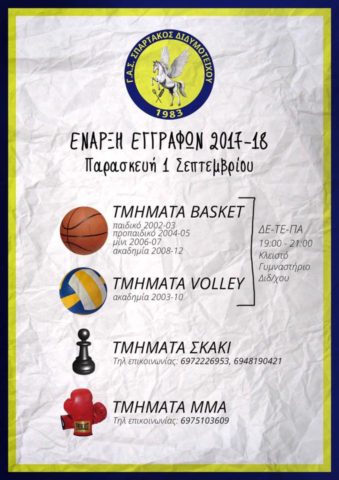 Οι εγγραφές στο τμήμα ξεκινούν από 1η Σεπτεμβρίου.