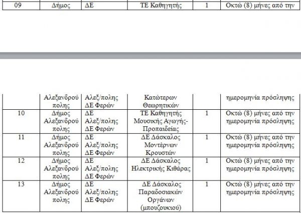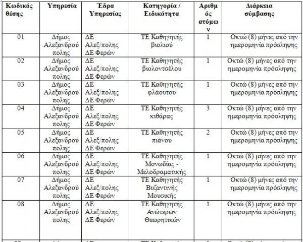 Πρόσληψης Μουσικών(καλλιτεχνικού – διδακτικού) προσωπικού με σύμβαση εργασίας ιδιωτικού δικαίου ορισμένου χρόνου (με αντίτιμο) στο Δημοτικό Ωδείο Αλεξανδρούπολης και στο Παράρτημα αυτού στη Δημοτική Ενότητα Φερών