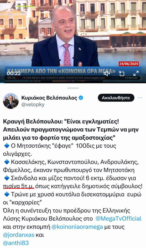 Επισημαίνουμε επίσης ότι μάλλον δεν βλέπει τα τοπικά κανάλια στα οποία έγιναν οι καταγγελίες, αλλά προτιμάει τα αθηναϊκά όπως το Mega( δεν είναι κακό) και του τονίζουμε ότι στο x- ακριβώς από κάτω υπάρχει ο αριθμός 25 μέτρα, που μάλλον δεν είδε.