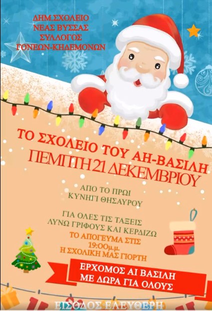 Το Δημοτικό σχολείο Νέας Βύσσας – Καραθεοδώρειο γίνεται το σχολείο του Αη-Βασίλη!