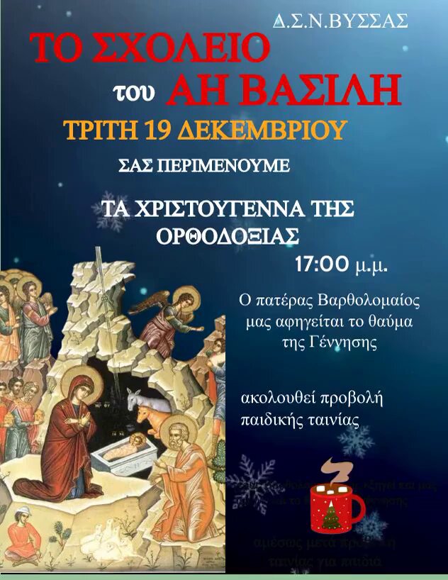Πέμπτη 21 Δεκεμβρίου και ώρα 19:00 μ.μ.: η σχολική μας γιορτή ανοιχτή για όλους.