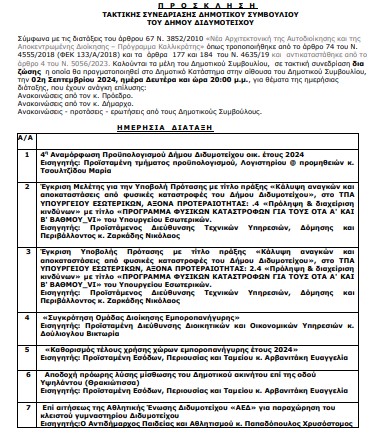 Διπλή συνεδρίαση σήμερα, Τρίτη 2 Σεπτεμβρίου 2024 για το Δημοτικό Συμβούλιο Διδυμοτείχου με μία τακτική και μία ειδική συνεδρίαση Λογοδοσίας της Δημοτικής Αρχής