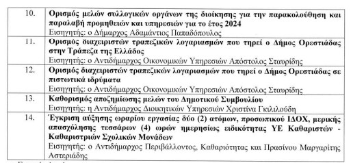 Στην συνέχεια και ώρα 20:00 θα πραγματοποιηθεί τακτική συνεδρίαση με 14 συνολικά θέματα στην ημερήσια διάταξη για συζήτηση και λήψη απόφασης.