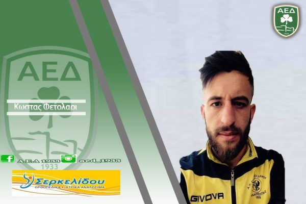 Η ομάδα μας είναι στην ευχάριστη θέση να ανακοινώσει την απόκτηση του ποδοσφαιριστή Κώστα Φετολάρι (1992) που αγωνίζεται στην θέση του αμυντικού χαφ.