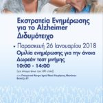 - 10:00-14:00 Ενημερωτική ομιλία για την άνοια και δωρεάν Τεστ Μνήμης (για άτομα άνω των 60 ετών)