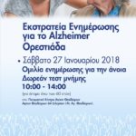 Το Σάββατο 27 Ιανουαρίου η δράση θα βρεθεί στην Ορεστιάδα, όπου θα χορηγηθούν δωρεάν τεστ μνήμης σε άτομα άνω των 60 ετών από το επιστημονικό προσωπικό του «Καρέλλειου – Πρότυπη Μονάδα Alzheimer» του Φιλανθρωπικού Οργανισμού «ΑΠΟΣΤΟΛΗ», ενώ θα δοθεί ενημερωτική ομιλία σε σχέση με τη νόσο Alzheimer.