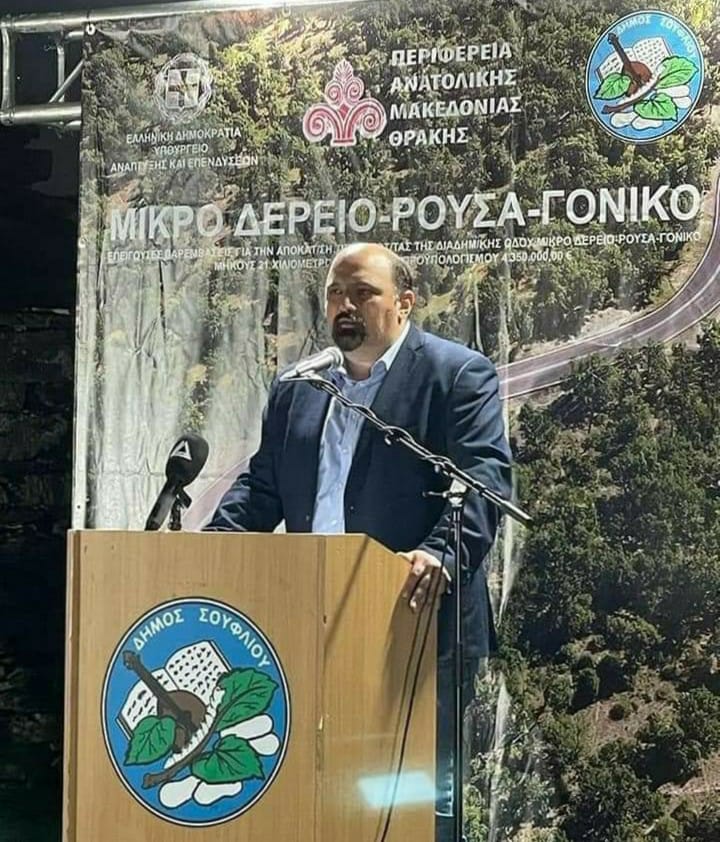 Το απόγευμα της ίδιας ημέρας, ο Υφυπουργός παρά τω Πρωθυπουργό Χρήστος Τριαντόπουλος και ο Γενικός Γραμματέας του Υπουργείου Εσωτερικών Μιχάλης Σταυριανουδάκης, μετέβησαν στον οικισμό της Ρούσσας του Δήμου Σουφλίου, όπου παρουσία του Δημάρχου Σουφλίου, του Περιφερειάρχη της ΑΜΘ Χρήστου Μέτιου, των βουλευτών του νομού Αναστάσιου Δημοσχάκη, Χρήστου Δερμεντζόπουλου και του Προέδρου της ΠΕΔ ΑΜΘ Βασίλη Μαυρίδη, πραγματοποιήθηκαν τα εγκαίνια για το έργο που αφορούσε « Παρεμβάσεις από κατάστασης της Βατότητας της Διαδημοτικής Οδού Μικρού Δερείου Ρούσσας Γονικού συνολικού προϋπολογισμού 4,3 εκατ. € ευρώ.»