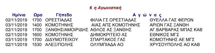 ΕΚΑΣΑΜΑΘ: Πρόγραμμα (6η Αγωνιστική)