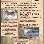 Tο Σάββατο 12 Σεπτεμβρίου 2015 και ώρα 20:00 στο χώρο της Αγίας Μαρίνας,θα πραγματοποιηθεί εκδήλωση η οποία στοχεύει στην ανάδειξη του σπηλαιολογικού πλούτου της περιοχής μας.