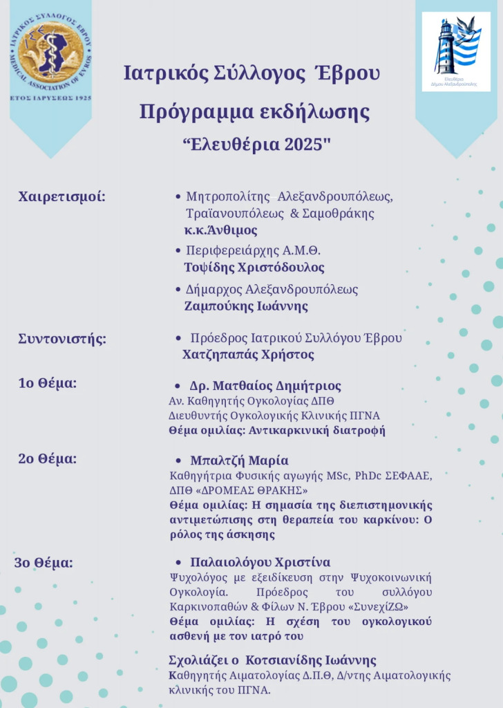 O Ιατρικός Σύλλογος Έβρου διοργανώνει στην Αλεξανδρούπολη επιστημονική εκδήλωση με θέμα: «Προλαμβάνεται ο καρκίνος;».