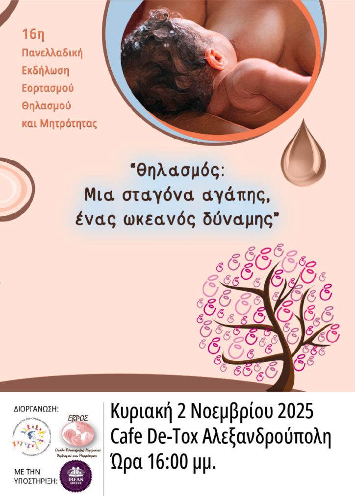 16η Πανελλαδική εκδήλωση εορτασμού θηλασμού και μητρότητας θηλασμός: Μια σταγόνα Αγάπης, ένας ωκεανός δύναμης!
