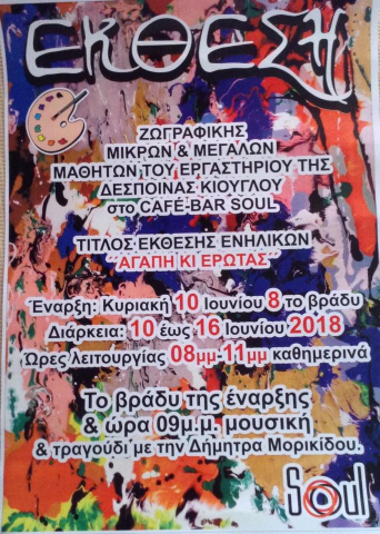 Η Δέσποινα Κιουγλού μας προσκαλεί με τους μαθητές του εργαστηρίου της στην ετήσια έκθεση ζωγραφικής με θέμα “Αγάπη κι Έρωτας”…