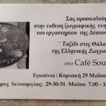 Το εργαστήρι ζωγραφικής της Δέσποινας Κιουγλού θα παρουσιάσει στο χώρο του cafe Soul μία έκθεση ζωγραφικής από τα τμήματα των ενηλίκων με θέμα τη θάλασσα.
