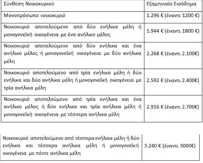 Το εξαμηνιαίο εισόδημα δεν μπορεί να υπερβαίνει πλέον το ποσό των 5.832 € (έναντι 5.400 € προ της αυξήσεως), ανεξαρτήτως του αριθμού των μελών του νοικοκυριού.