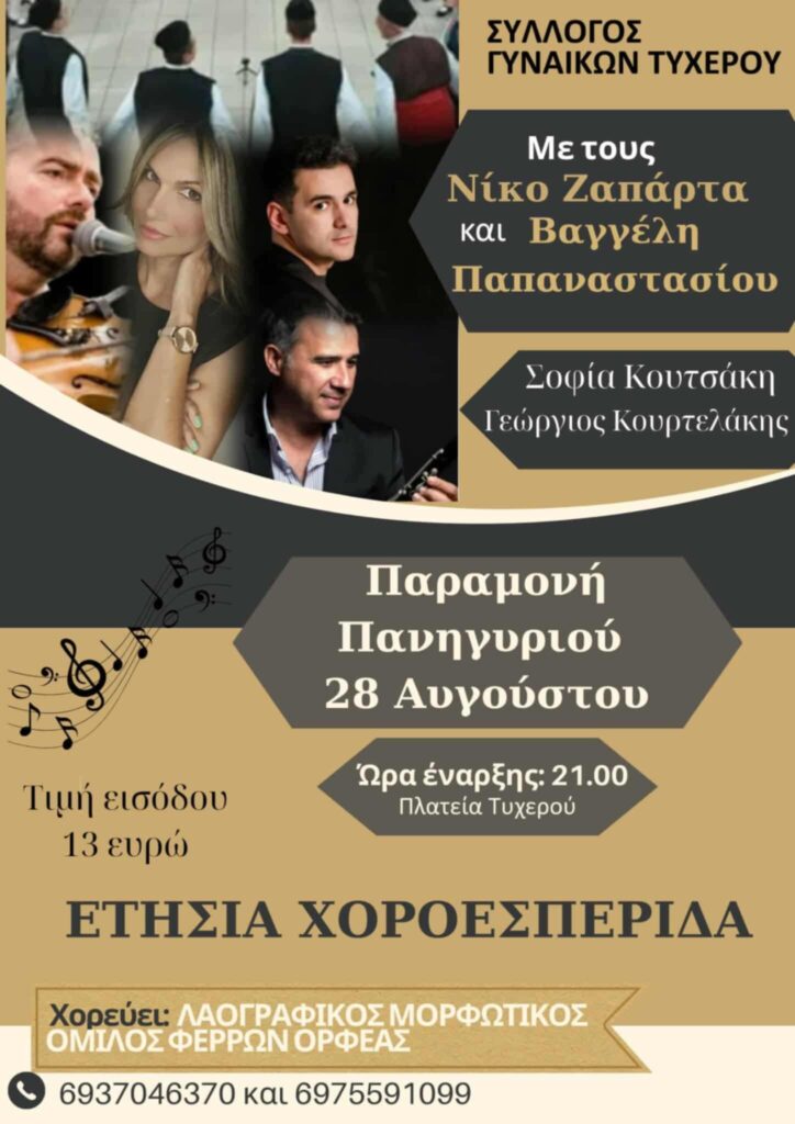 - 28 Αυγούστου: Ετήσιος παραδοσιακός χορός του Συλλόγου Γυναικών Τυχερού.