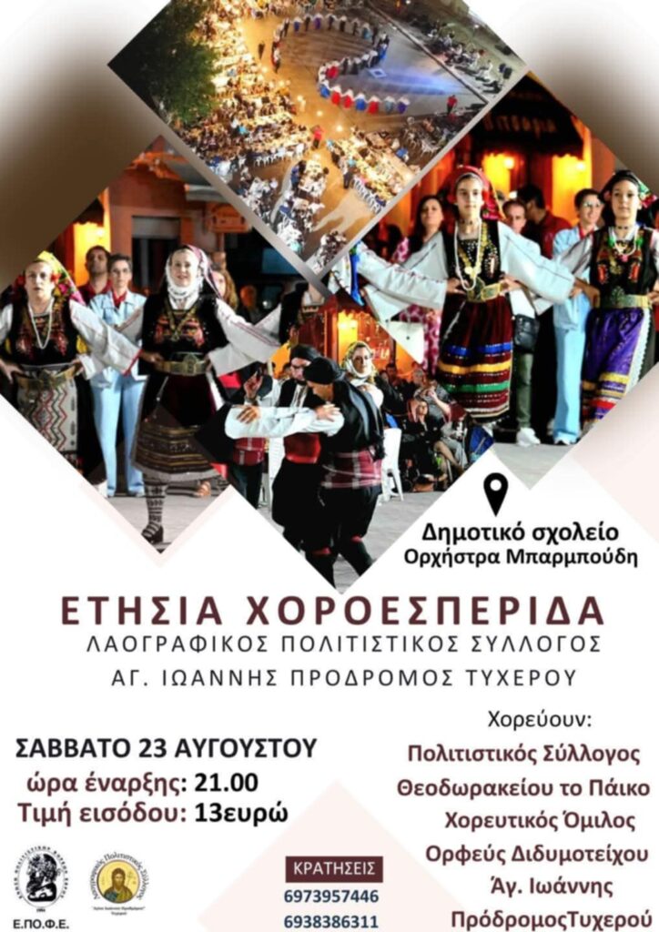 - 23 Αυγούστου: Ετήσιος χορός Αγίου Ιωάννη Προδρόμου (Δημοτικό Σχολείο Τυχερού).