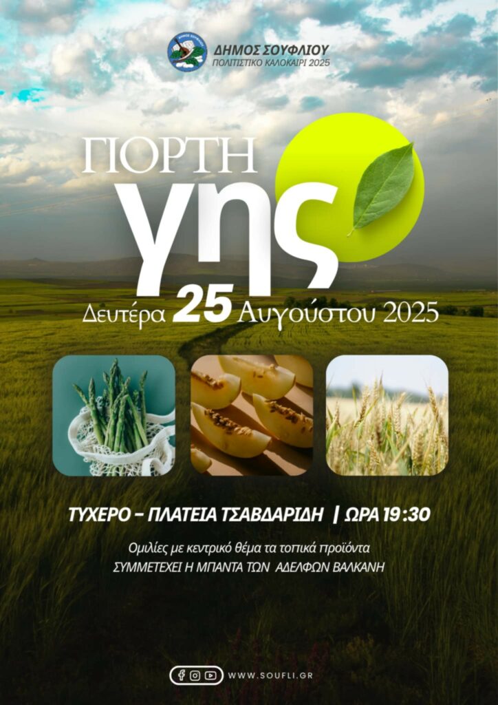 Θα διεξαχθεί το ίδιο χρονικό διάστημα με τις εκδηλώσεις που διοργανώνει ο Δήμος Σουφλίου στα πλαίσια του « Πολιτιστικού Καλοκαιριού 2025» στην πόλη του Τυχερού γεγονός που θα αποτελέσει για το Τυχερό πόλο έλξης για τις τελευταίες ημέρες του φετινού καλοκαιριού.