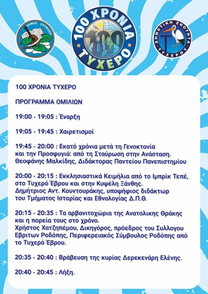 Το Τυχερό γιορτάζει τα 100 χρόνια ζωής του. Ένας πρώην Δήμος, νυν Δημοτική Ενότητα του Δήμου Σουφλίου μαζί με τους γύρω οικισμούς, είναι αναμφισβήτητα ένα παράδειγμα/υπόδειγμα ανάπτυξης και συνεργασίας δυνάμεων. Δεν είναι τυχαίο πως στο παρελθόν αποτέλεσε βραβευμένο από την Ακαδημία Αθηνών πρότυπο Δήμου για όλη τη χώρα. Άλλωστε ποτέ δεν έχει εγκαταληφθεί η ιδέα να ξαναγίνει αυτόνομος Δήμος Τυχερού, μαζί με τους οικισμούς του, αφού κρατάει τις πληθυσμιακές δυνάμεις του: 300 παιδιά στα σχολεία του, δεν είναι συνηθισμένο για τα χωριά του Έβρου.