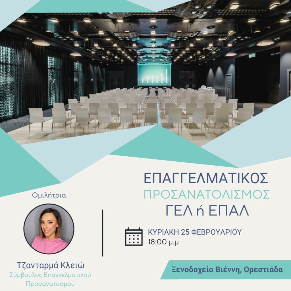 Η ομιλία έχει σχεδιαστεί ειδικά για να προσφέρει χρήσιμες συμβουλές και καθοδήγηση στους μαθητές που επιδιώκουν να δημιουργήσουν την καλύτερη για αυτούς επαγγελματική πορεία. Είναι μια ευκαιρία να ανακαλύψουν τις δυνατότητες και τα χαρακτηριστικά, που έχουν να κάνουν με την επιλογή: