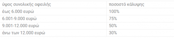 Το ύψος του εφάπαξ βοηθήματος καθορίζεται ανάλογα με το ύψος της οφειλής: