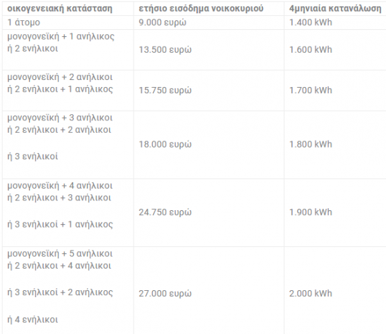 - ικανοποιούνται τα εισοδηματικά και περιουσιακά κριτήρια υπαγωγής στο νέο Κοινωνικό Οικιακό Τιμολόγιο (ΚΟΤ)