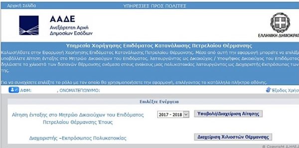 - Με ποιους κωδικούς εισερχόμαστε στην Εφαρμογή Δικαιούχων του Επιδόματος πετρελαίου Θέρμανσης;