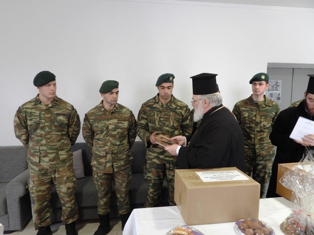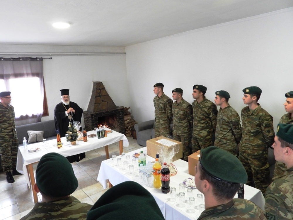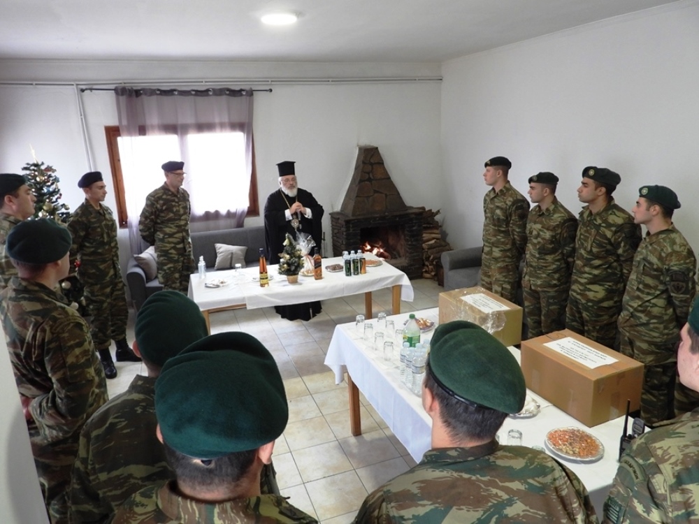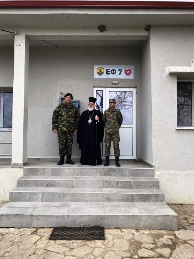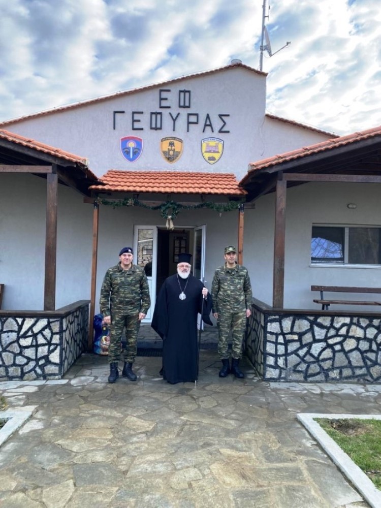 Ο Σεβασμιώτατος επισκεπτόμενος παραμεθόριες μονάδες μετέφερε στο ένστολο προσωπικό τους τις ευχές του Μακαριωτάτου Αρχιεπισκόπου Αθηνών και πάσης Ελλάδος κ. Ιερωνύμου και τις προσωπικές του για υγεία προσωπική, οικογενειακή και επαγγελματική ευτυχία, εξαίροντας την αφοσίωσή τους στο καθήκον και την αποστολή τους. Μαζί με χρήσιμα γι’ αυτούς είδη διένειμε σε όλους την Καινή Διαθήκη, σε απόδοση στην νεοελληνική, προσφορά της Ελληνικής Βιβλικής Εταιρείας.