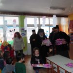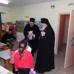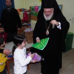 Με την ευκαιρία αυτή ο Σεβασμιώτατος διένειμε σχολικά είδη στους μαθητές των Δημοτικών Σχολείων και παιχνίδια στα νήπια.