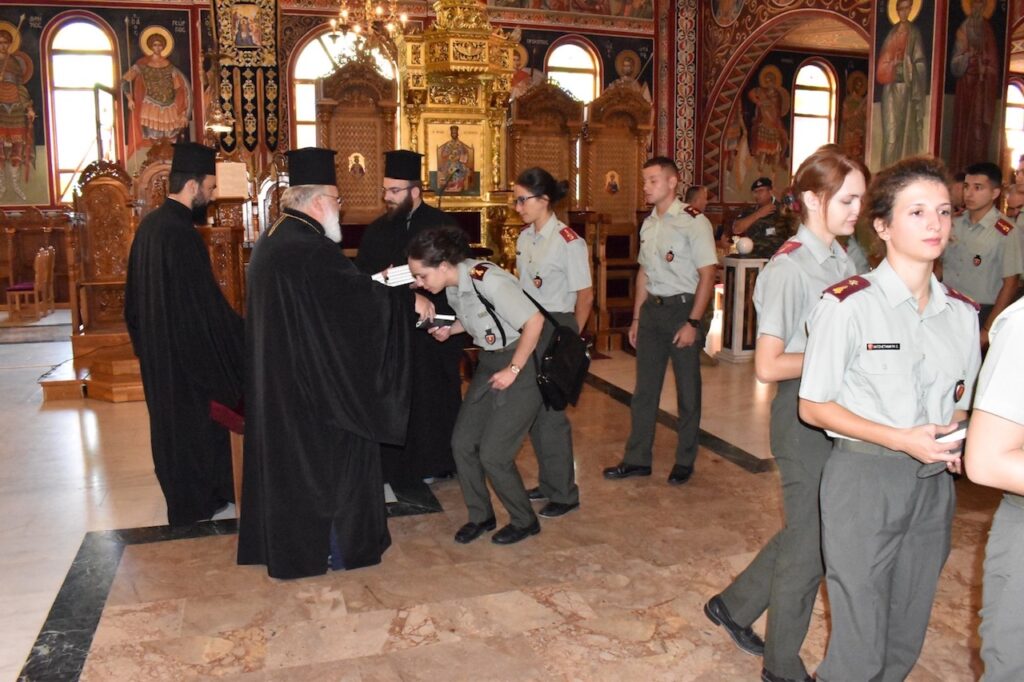Ο Σεβασμιώτατος δέχθηκε τους σπουδαστές στον Ιερό Καθεδρικό Ναό Παναγίας Ελευθερωτρίας Διδυμοτείχου, όπου και τους μίλησε για την ιστορία του τόπου και το ποιμαντικό έργο της τοπικής Εκκλησίας. Στη συνέχεια ο Σεβασμιώτατος και ο Διοικητής της Σχολής Υποστράτηγος Γεώργιος Βακλατζής αντήλλαξαν αναμνηστικά δώρα. Τέλος, ο Σεβασμιώτατος διένειμε στους σπουδαστές την Καινή Διαθήκη σε παραλλαγή.