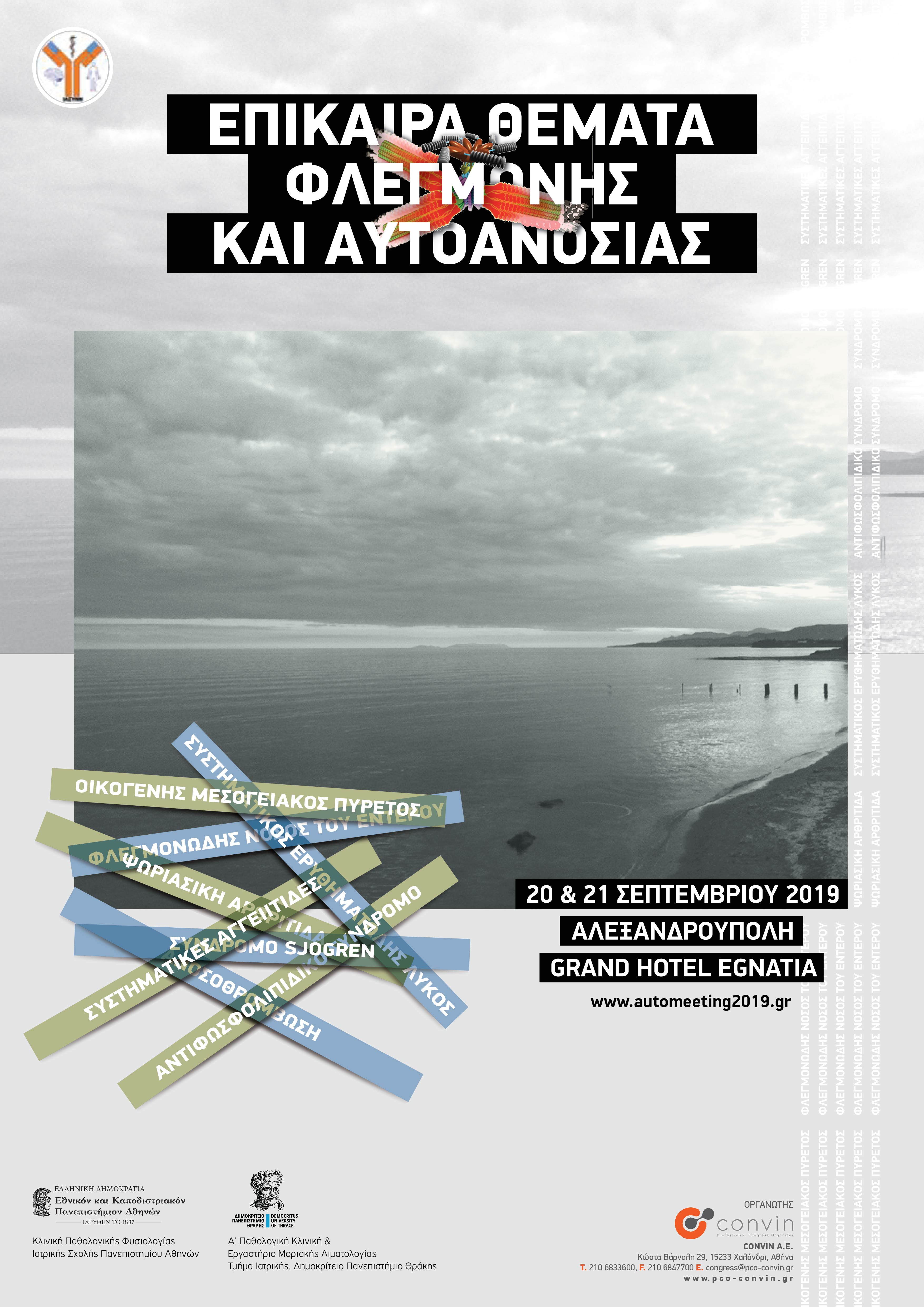 H εκδήλωση στοχεύει στην παρουσίαση νεóτερων εξελίξεων στο πεδίο της φλεγμονής, σε ερευνητικó, κλινικó και εκπαιδευτικó επίπεδο. Θα παρουσιαστούν σύγχρονα δεδομένα που αφορούν την καλύτερη κατανóηση των αυτοάνοσων παθήσεων, την ακριβέστερη διάγνωση και την εφαρμογή νεότερων θεραπειών, ιδιαίτερα σε δύσκολες περιπτώσεις. Επιπλέον η εκδήλωση θα αποτελέσει ευκαιρία για γóνιμη ανταλλαγή απóψεων, δίνοντας ευκαιρίες για νέες ερευνητικές αναζητήσεις και συνεργασίες. Στην εκδήλωση συμμετέχουν αναγνωρισμένοι στο αντικείμενο τους επιστήμονες απó την Ελλάδα και το εξωτερικó, αλλά και νέοι κλινικοί ιατροί και ερευνητές.