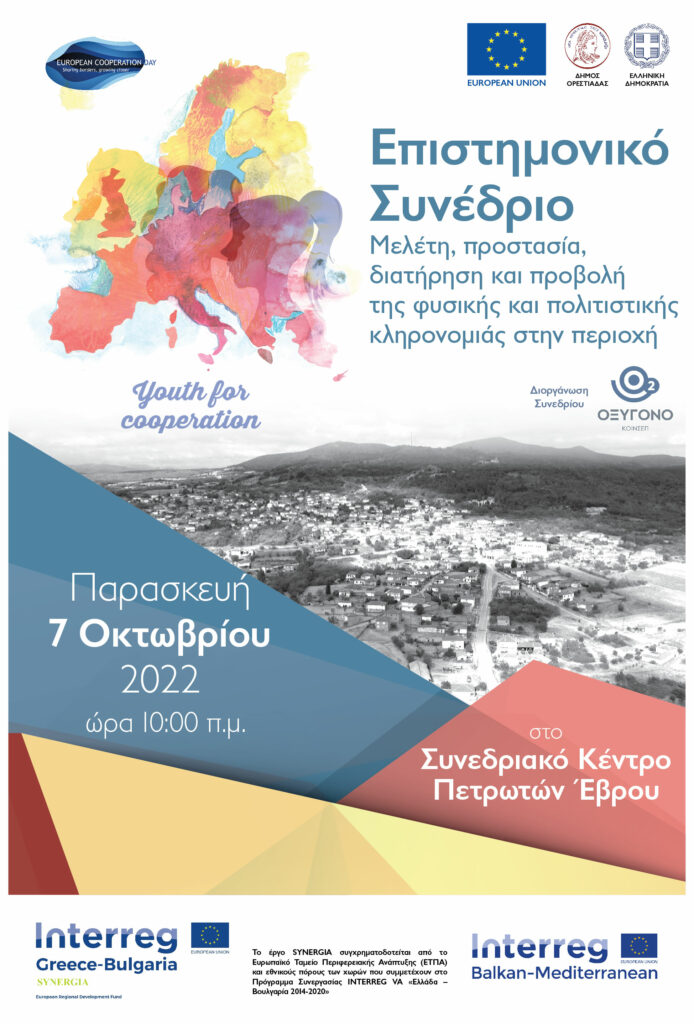 Το Επιστημονικό Συνέδριο «Μελέτη, προστασία, διατήρηση και προβολή της φυσικής και πολιτιστικής κληρονομιάς στην περιοχή» διοργανώνει την Παρασκευή 7 Οκτωβρίου 2022 ο Δήμος Ορεστιάδας στο Συνεδριακό Κέντρο Πετρωτών.