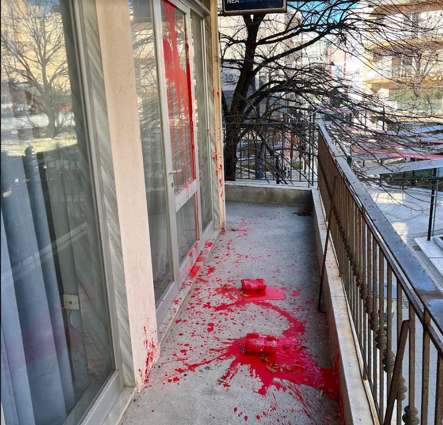 Σημειώνεται πως παρόμοια επίθεση με μπογιές συνέβη χθες, Δευτέρα, στα γραφεία της Νέας Δημοκρατίας στην πόλη της Λάρισας, χωρίς να είναι ξεκάθαρο αν τα περιστατικά συνδέονται μεταξύ τους.
