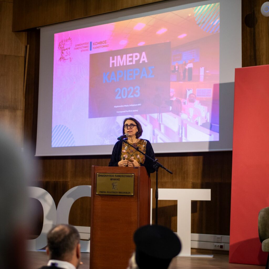 Την εκδήλωση τίμησε με την παρουσία του ο Πρύτανης του ΔΠΘ κ. Φώτης Μάρης ο οποίος απηύθυνε χαιρετισμό.