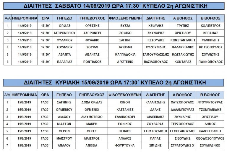 Δείτε το πρόγραμμα και τους διαιτητές της 2ης Αγωνιστικής της Α’ Φάσης για το Κύπελλο “Σιγρέκης” της ΕΠΣ Έβρου που θα διεξαχθεί το Σαββατοκύριακο (14-15/9/2019).